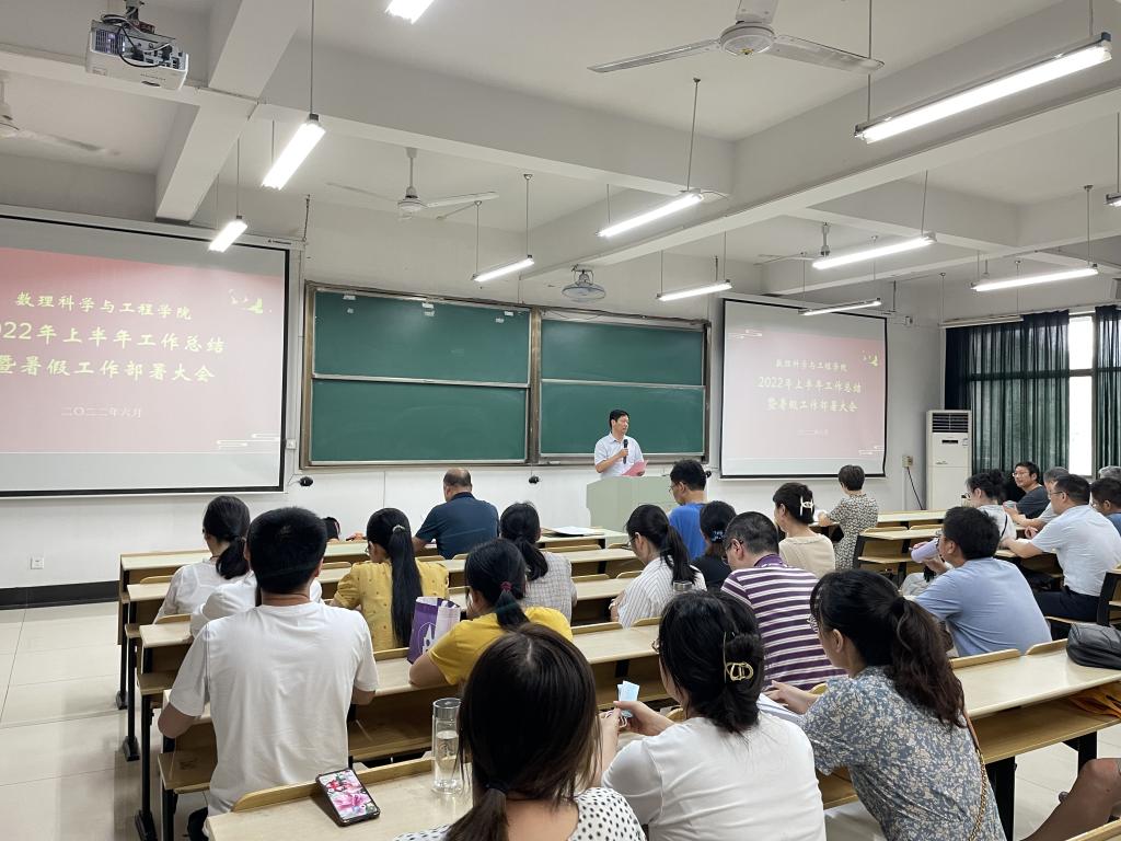 6月27日下午,数理科学与工程学院在数理楼403召开2022年上半年工作总结暨暑假工作部署会议,全院教职工参加了会议,会议由院党委副书记、学生副院长、纪委书记郭宏主持。