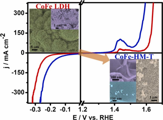 同时,团队开展了新型析氢电极的设计工作。通过硫脲-NaOH的处理方法在CoFeAl LDH上制备了由金属硫化物组成的多孔结构(CoFeAl-T-NaOH)。实验表明,CoFeAl-T-NaOH电催化剂具有优异的OER、HER、OWS和稳定性。研究发现,多孔异质结构促进了反应物的运输和产物的扩散,金属硫化物异质结促进了电荷迁移。相关成果发表在中国科学院TOP期刊Nanoscale (IF:8.3)。邓小龙副教授为第一和通讯作者,曹加锋副教授和济南大学黄金昭教授为论文共同通讯作者。