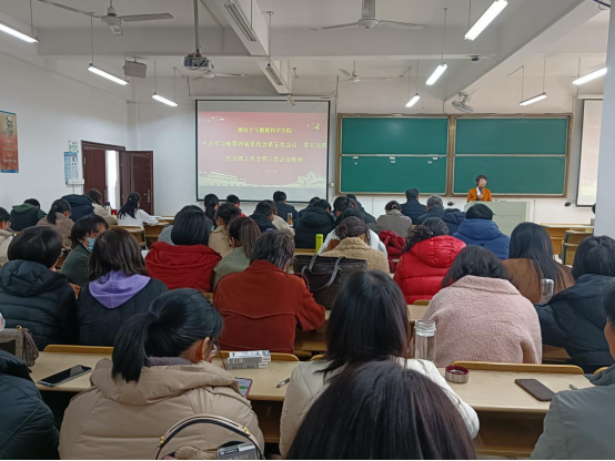 随后,张清传达在校第四届党代会第五次会议、第五届教代会暨工代会第三次会议上校党委书记陆林题为《改革攻坚再深化守正创新提效能团结奋斗强作风以党的二十大精神统领内涵式高质量发展新实践》的讲话精神,以及校长魏先文题为《锚定高质量激发新动能奋力建设国内知名特色高水平大学》的讲话精神。她指出,要认真学习贯彻落实校第四届党代会第五次会议、第五届教代会暨工代会第三次会议精神,紧紧围绕学校的重点任务,结合学院党政工作要点,凝心聚力统筹推进好全院各项工作。