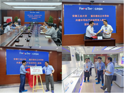 下午,学院一行到达安徽富乐德长江半导体材料股份有限公司。公司总经理顾雪龙首先对学院的到来表示欢迎,并向大家介绍了富乐德长江半导体的发展历程、技术特色和业务范围等。杨二光向企业介绍了学院的专业设置、人才培养特点和学科发展等,听取了企业在专业人才和科技攻关方面的需求。双方就当前集成电路和半导体产业存在的人才缺乏等问题进行了深入的交流,希望能够结合各自所长,推动工程师人才培养和学生就业,实现高质量的产教融合,随后双方举行了“半导体产业协同育人基地”的签约和授牌仪式。