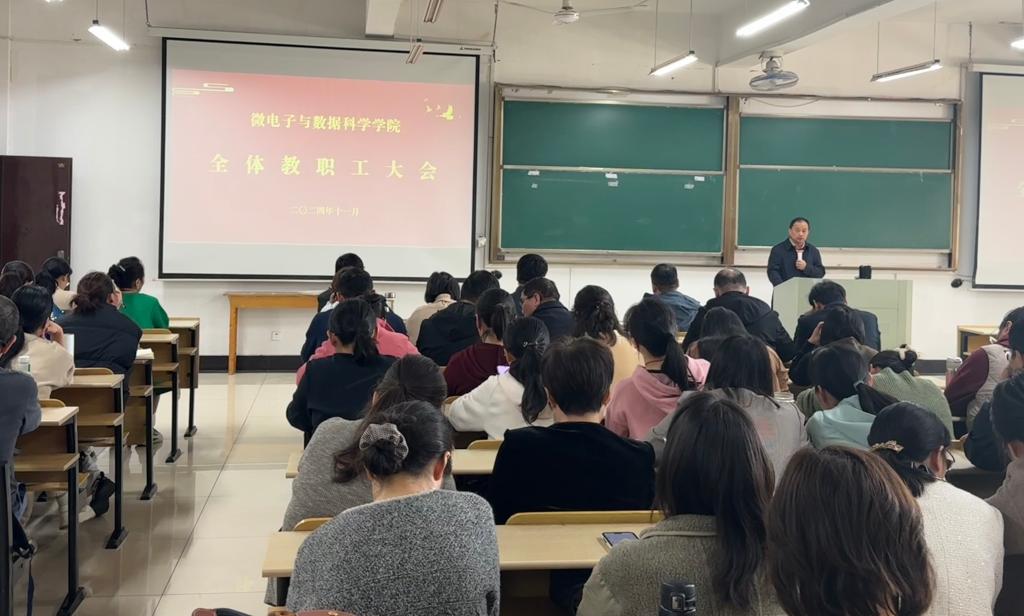 在数理楼403召开全院教职工大会。会议由学院党委书记汪春胜主持,学院全体教职工参会。