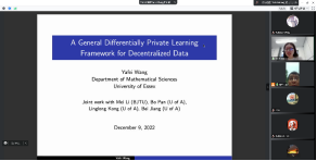 邀请线上作了题为《去中心化下保护数据隐私的学习框架》的学术报告。学院相关教师以及大数据专业20级、21级全体同学和22级研究生同学共计50余人参加了报告会。