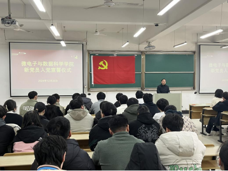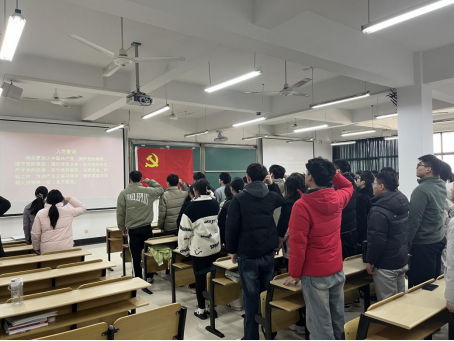 12月26日,微数学院在数理楼403为新发展党员举行入党宣誓仪式。学院党委书记汪春胜、党委副书记张敏、各学生支部书记及全体学生党员、部分入党积极分子参加了宣誓仪式。