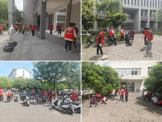 同学们身穿“志愿红”马甲,携带垃圾袋、扫把、簸箕等劳动工具,在G1栋公寓内外、数理楼周围等区域进行清扫保洁,彻底清理卫生死角。大家互相配合,不怕脏、不喊累,以认真的态度与饱满的热情投入到劳动中。在大家的共同努力下,校园环境井然有序、焕然一新。