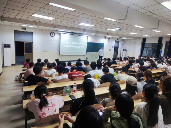 为有效加强学生组织纪律性,全面开展好国防教育和军事课程,培养大学生国家安全意识,高质量完成2024级新生军训工作,9月9日,微数学院于秀山校区东教一阶101召开2024级新生军训动员大会。2024级辅导员及全体参训学生参会。会议由辅导员段世祥主持。