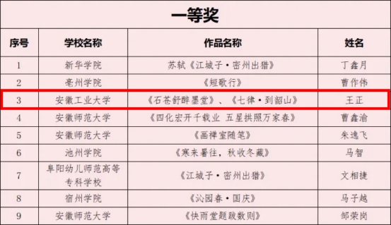 王正同学的书法作品荣获一等奖。