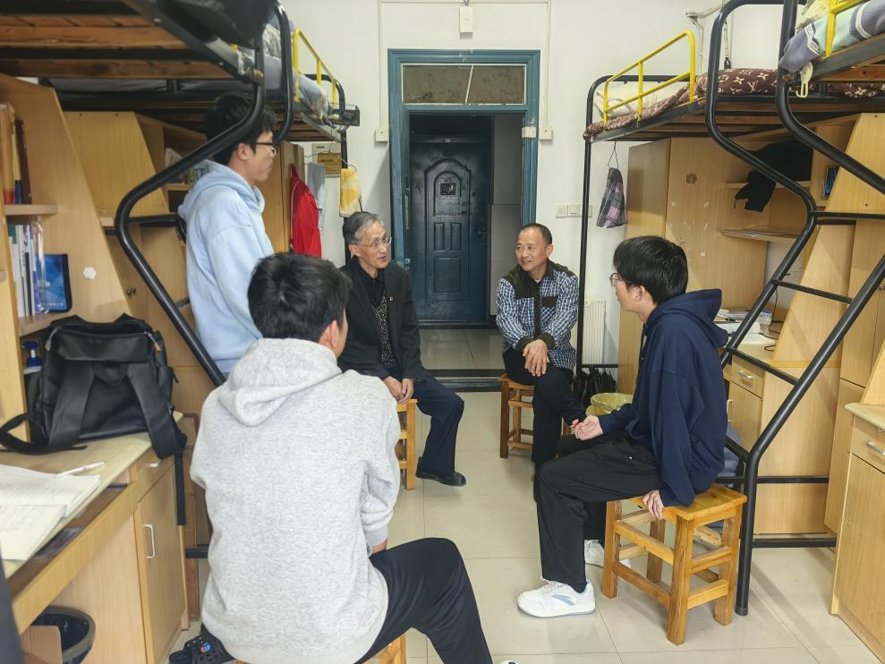 为深入推进新生“启航工程”系列活动落地见效, 10月29日下午,学院二级关工委组织新生宿舍走访活动,院党委书记汪春胜,老教师代表汪忠志以及2025级辅导员深入新生宿舍,与同学们亲切交流,以暖心关怀纾解新生们初入校园的不适,用宝贵经验为新生成长注入动力。