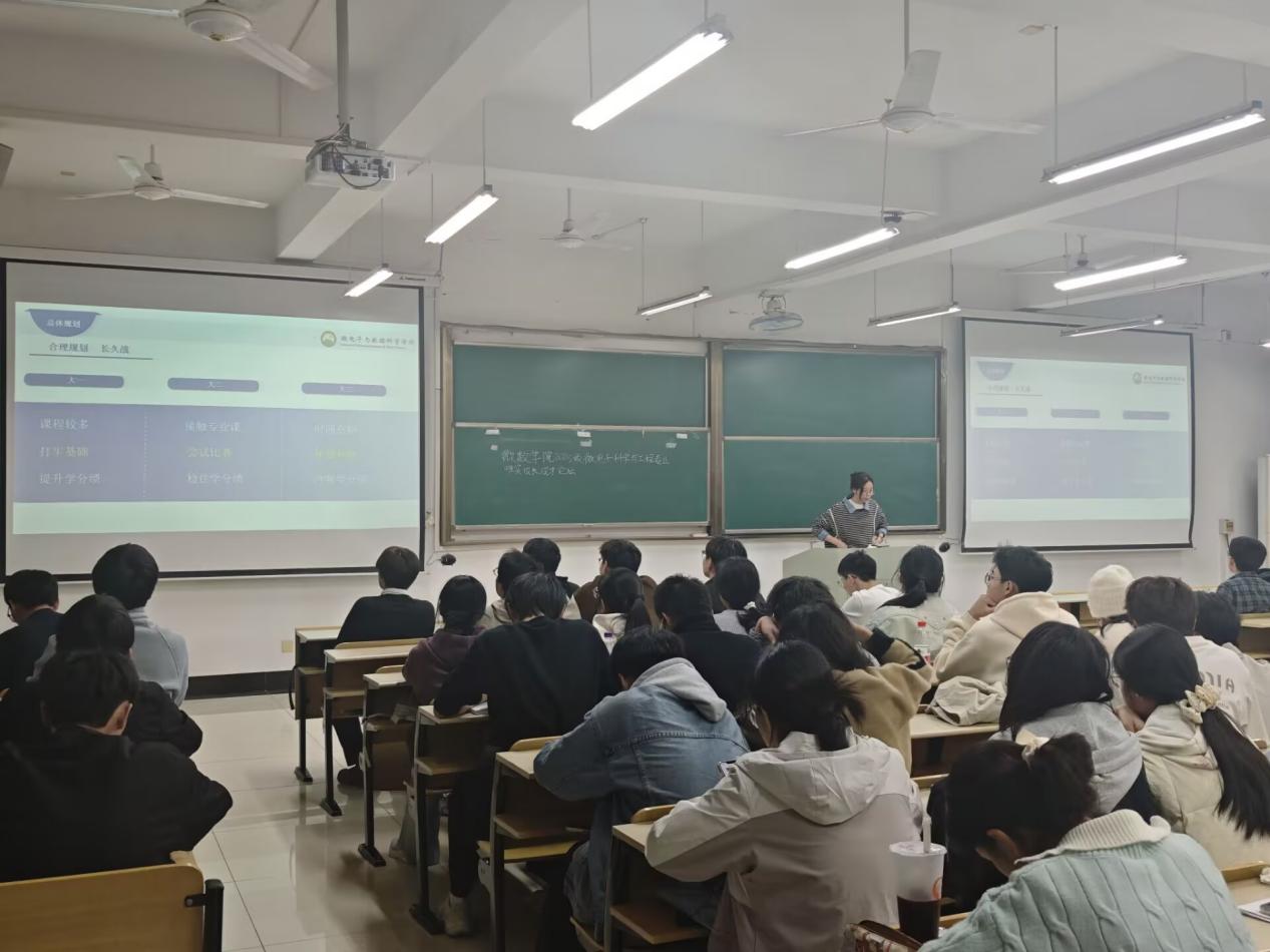 经历积累路径、推荐信准备实用技巧等关键环节。叶青则梳理了适配微电子科学与工程专业的竞赛体系,从“挑战杯”、“互联网+”等综合性赛事到学科专项竞赛,逐一解析不同竞赛的备赛重点、时间规划与能力要求。针对新生普遍关注的课程学习问题,两人还分享了高效笔记整理、期末复习策略、跨学科知识拓展等实用技巧。