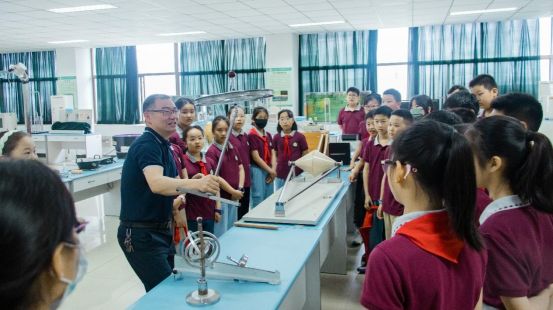 在老师的演示下,一个个生动有趣的现象,如同变戏法一样地展示了出来,牢牢地吸引了孩子们的注意力。机翼升力、记忆合金、共振、避雷针、电磁炮等各种高深的物理知识,都变成了酷炫的玩具,孩子们体验各种实验装置,全神贯注地观察和倾听,生怕错过任何一个细节。他们的脑洞大开的问题和答案引发了阵阵笑声,原本严肃的实验课堂变成了欢快的探索乐园。同学们表示这次活动比他们看的科普书还有趣,还想再来一次。